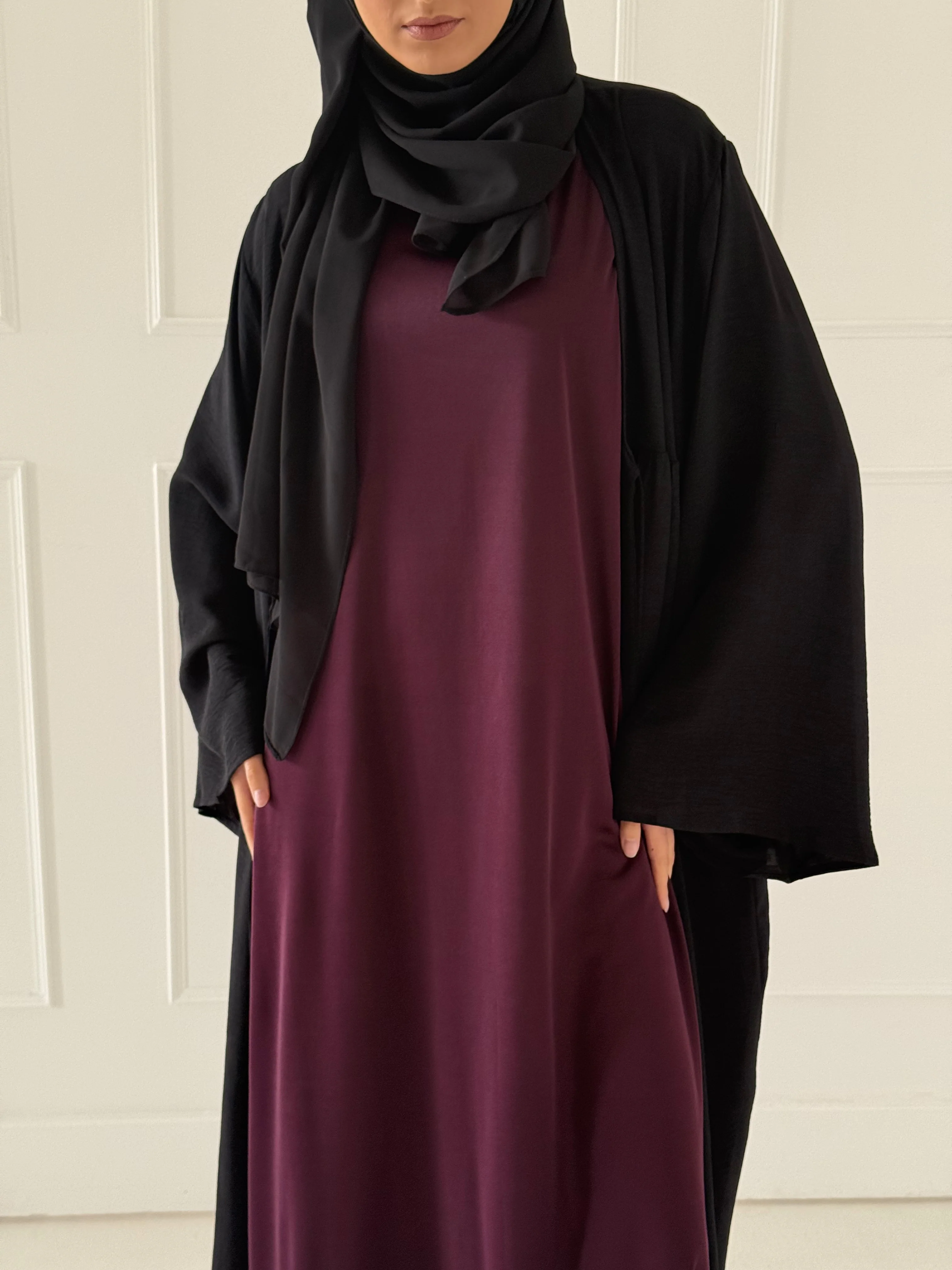 An essential for every modest wardrobe, a plain sleeveless slip dress which can be paired perfectly with our open abayas to complete your outfit to an elegant and classy standard.