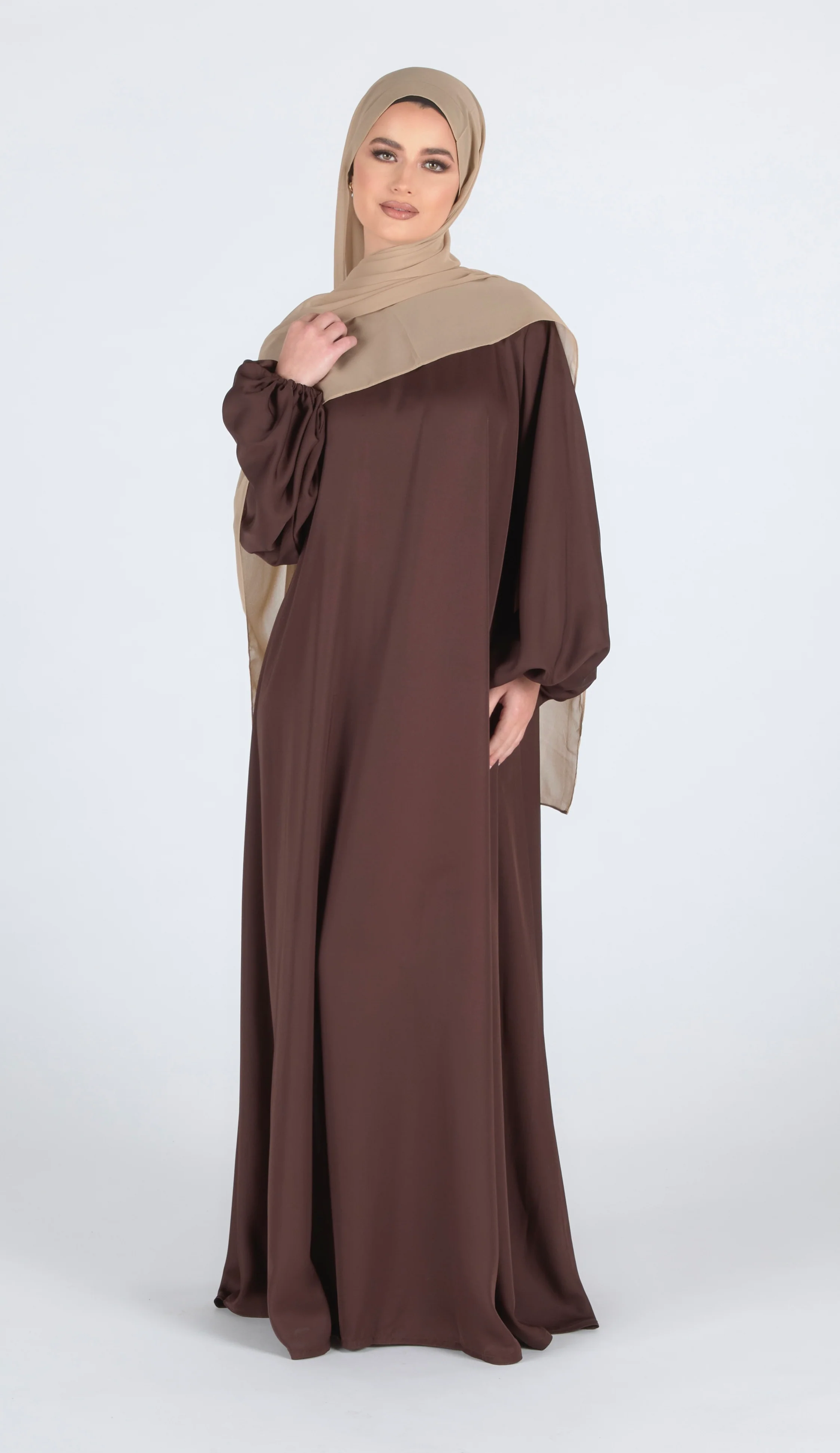 An essential for every modest wardrobe, our flare closed abayas are staple pieces designed to create pure elegance. A loose closed abaya of A line cut, which comes with a matching belt to instantly tailor the abaya to your own size, this abaya is flattering and instantly adds style and grace. The abaya also features gathered elasticated sleeves making it trendy as well as practical.